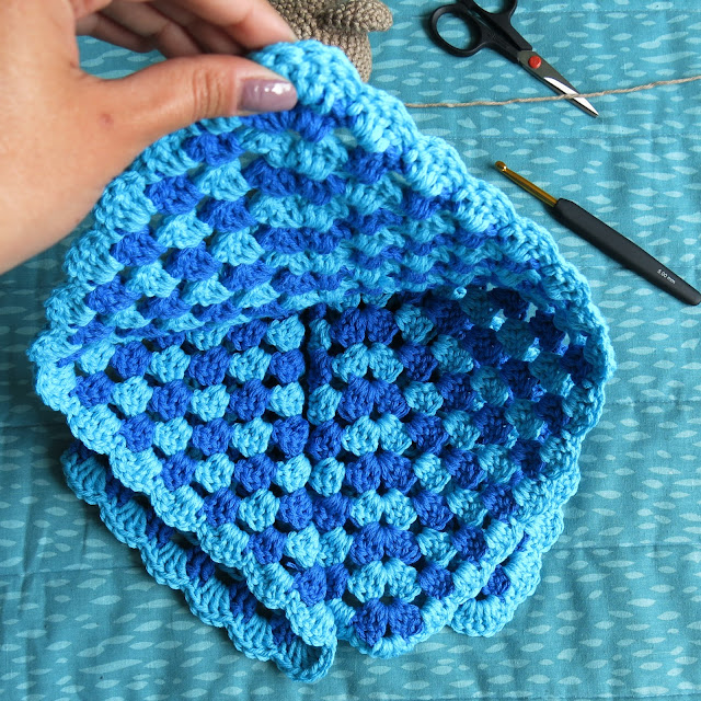 Antes de comenzar a coser la cabeza del amigurumi, asegúrense de doblar adecuadamente el granny square, como se muestra en las siguientes fotos. Deben formar un rombo con el granny y este debe ser lo suficientemente grande para quedar en esta forma sin problema.